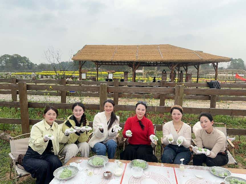 活动还特别安排了非遗美食制作体验环节。在景区手工作坊内,女职工们亲手揉面、包馅、蒸制,体验艾草青团的传统制作工艺。碧绿的青团软糯香甜,寓意着团圆美满,也让大家在动手实践中感受到传统民俗文化的深厚底蕴。活动最后,公司为每位女职工送上了精心准备的节日纪念品,致以诚挚的节日祝福。