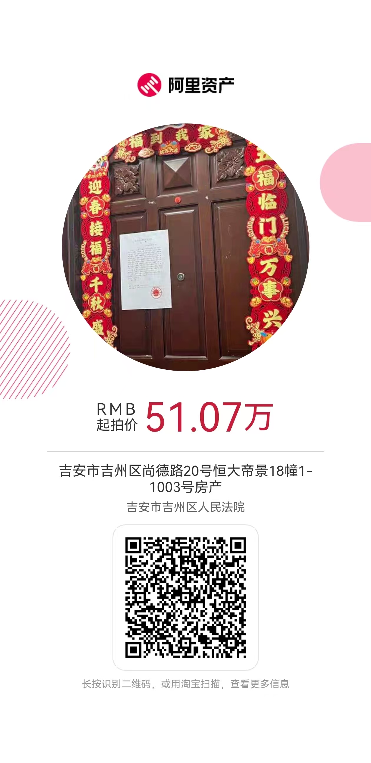以下是本公司已挂网法拍房,价格优惠,性价比极高,有意向的朋友请扫二维码在阿里资产了解具体信息!
