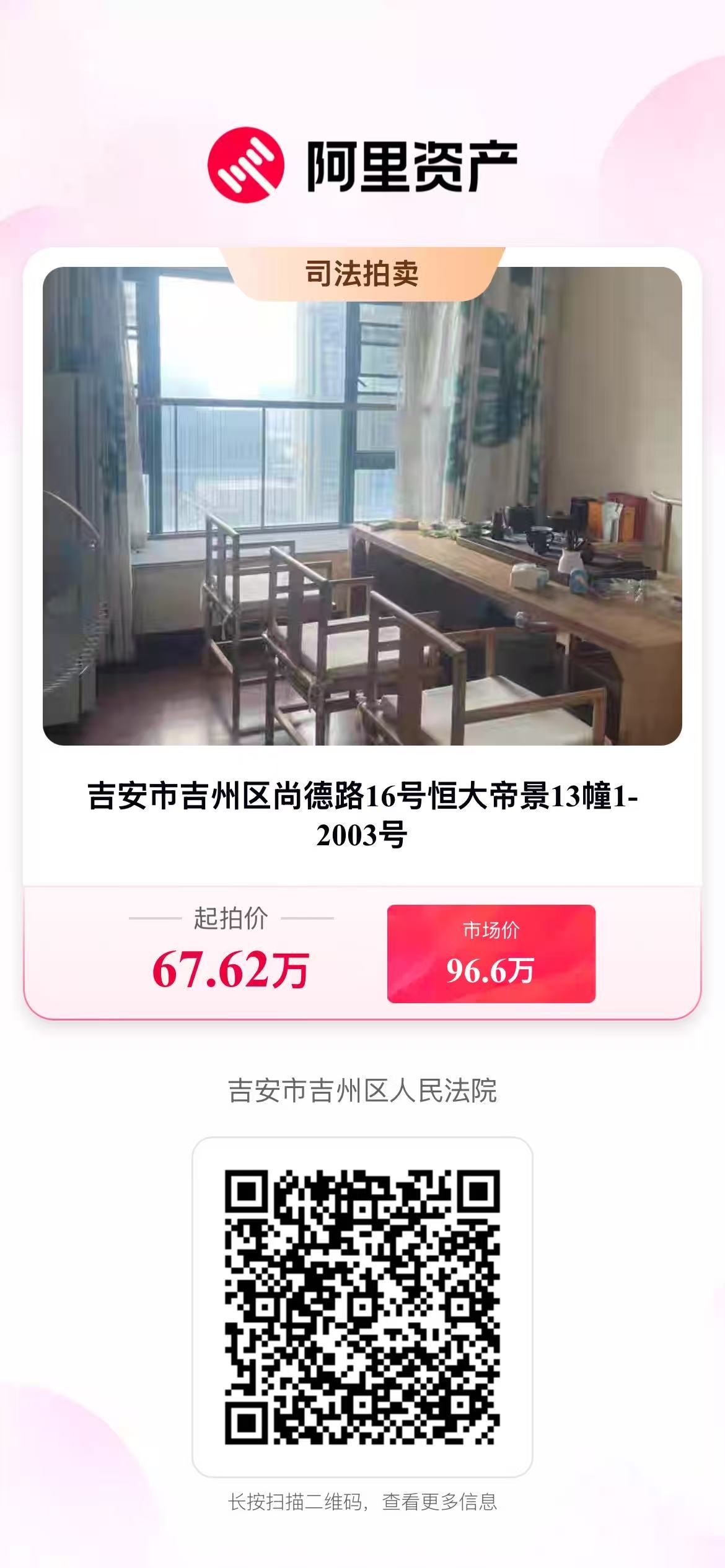 【学区精装法拍房】恒大帝景13-1-2003房已挂网,房屋面积143.76㎡。首拍价格为67.62万元,单价4703.85元。价格优惠,位于市政府旁,周边配套齐全,精装学区,读复兴路中学,性价比极高!有意向的朋友请联系拍卖页电话。